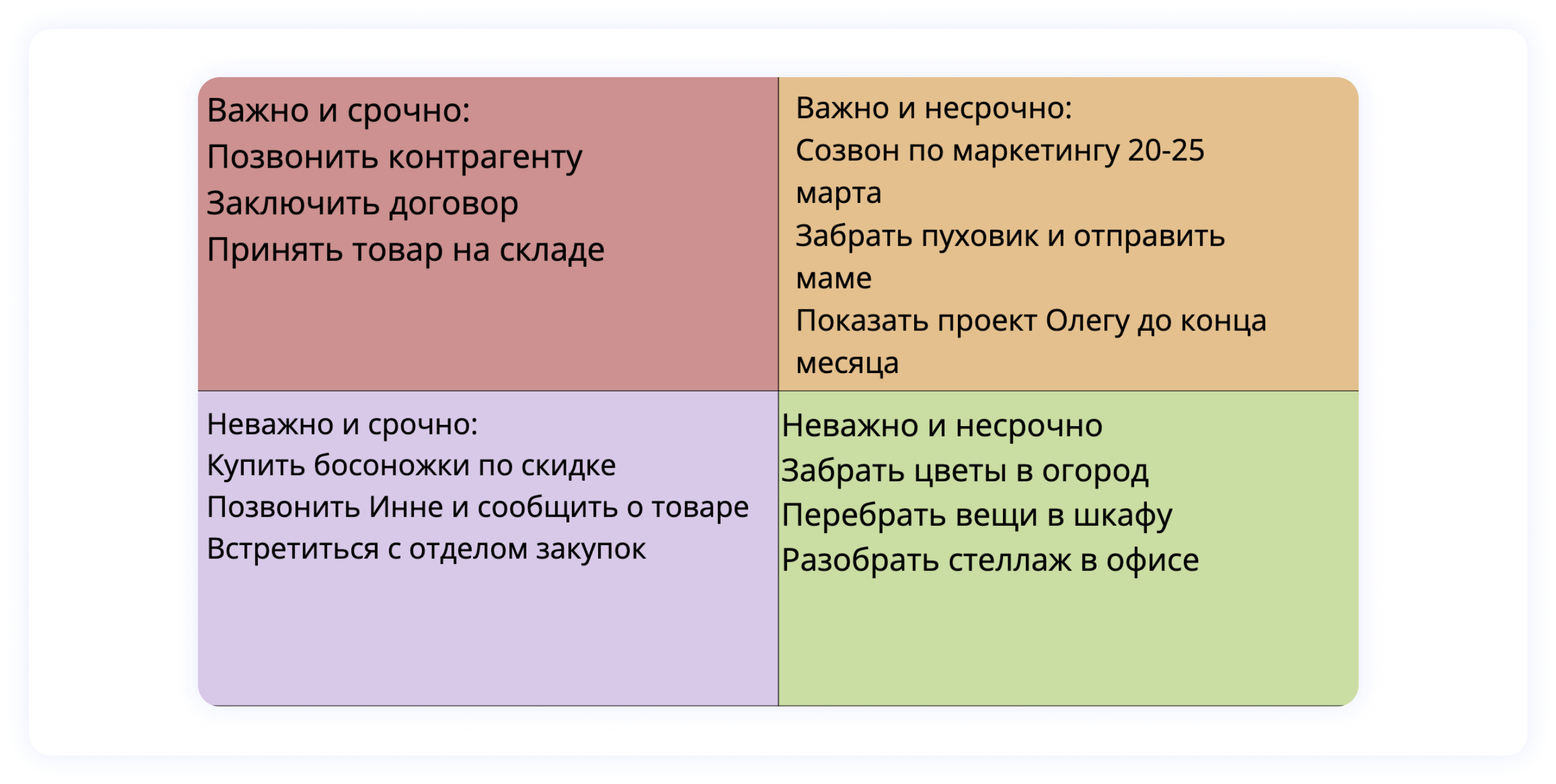 Ответ на этот вопрос — отправная точка для построения индивидуального графика и системы приоритетов․ Мы советуем: