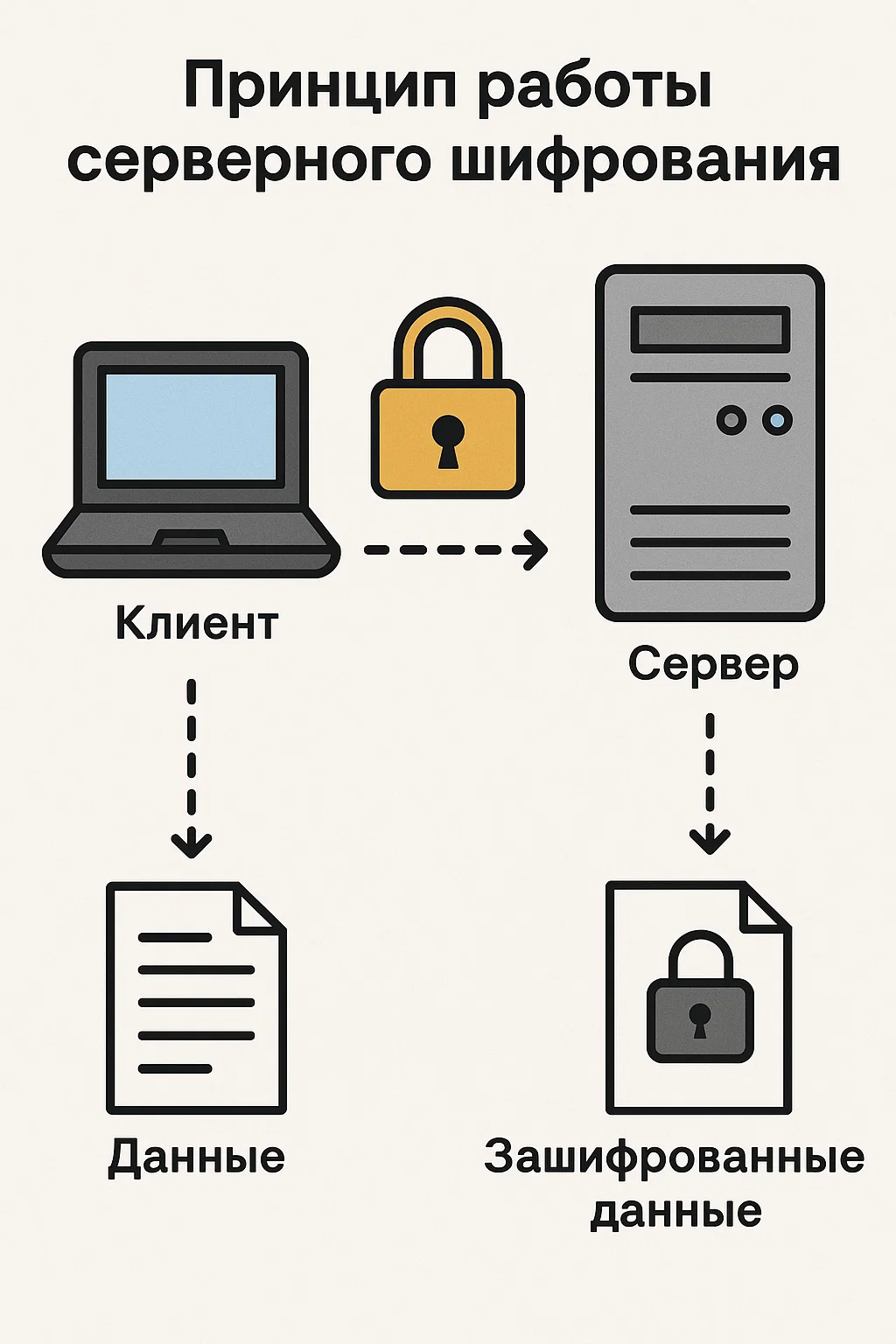- Шифрование на стороне сервиса: данные шифруются после загрузки на сервер, что может так или иначе зависеть от политики сервиса․