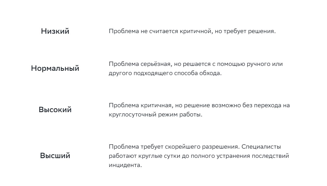 Такое описание позволяет клиенту понять‚ что он может ожидать от службы технической поддержки. Мы рекомендуем использовать аналогичный подход и для других услуг.