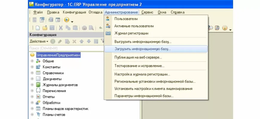 - Выбор функции «Восстановить резервную копию»‚ «Load Project» или аналогичной.