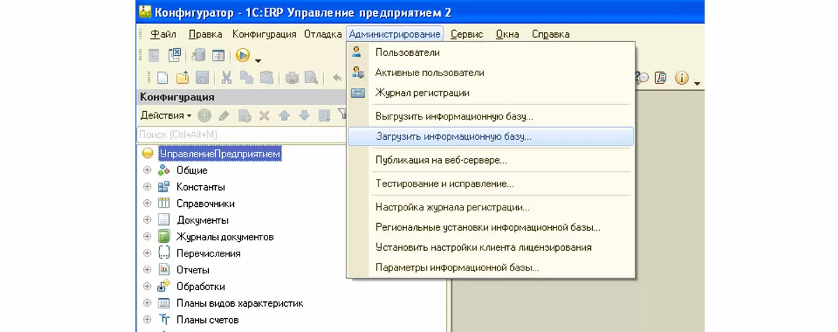 - Восстановление из резервной копии